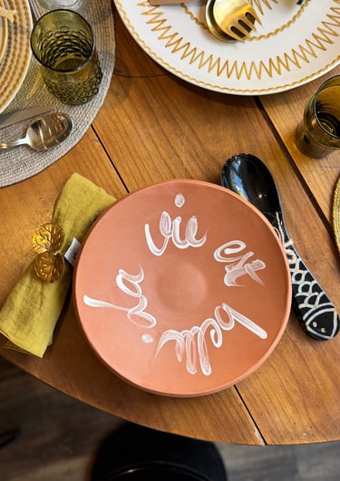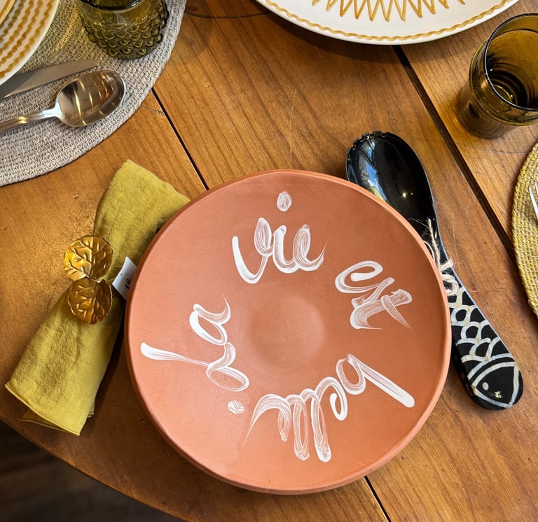 Le voyage imprègne chaque collection et inspire les créations, qu'il s'agisse de nos collections capsules ou des pièces uniques que nous sélectionnons avec soin aux quatre coins du monde. Notre inspiration puise ses sources dans un tissu artisanal indien, une broderie découverte sur un marché en Inde, une pièce de céramique marocaine… et surtout, dans la rencontre avec les artisans qui les créent.